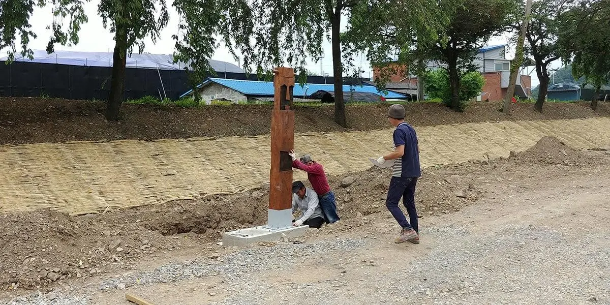 의성 남대천 고향의강 정비사업 중 장승 제작설치